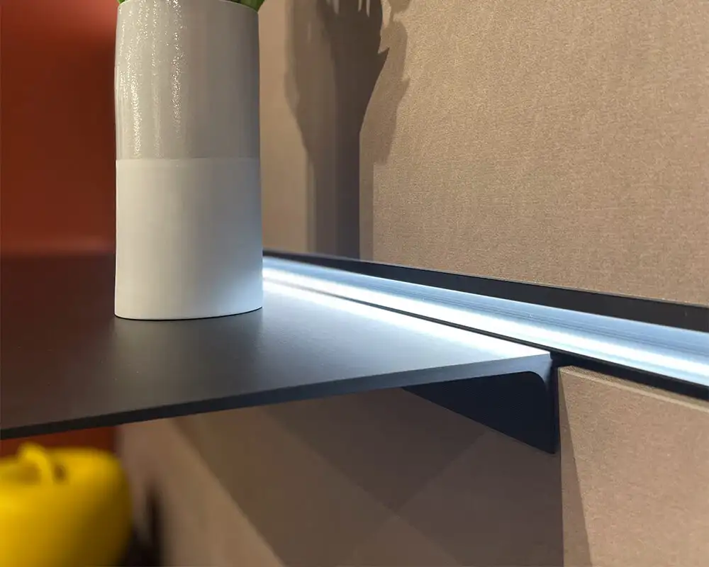 Dank seiner technischen Struktur, Line 03 von Ossicolor ist kompatibel mit hängenden Accessoires wie den Aufbewahrungselementen Modus EVO und dem ONDA-System, erweitert die gestalterischen Möglichkeiten und gewährleistet ein abgestimmtes Erscheinungsbild. Die Modularität des Systems ermöglicht maßgeschneiderte Konfigurationen und passt sich Wohn- und Objektbereichen an.